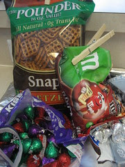 Lay the pretzels on a cookie sheet lined with foil or parchment and put a kiss on top of each. Yeah, you have to peel the kisses. (Um, sorry about the photo, it didn't look good at any angle.)